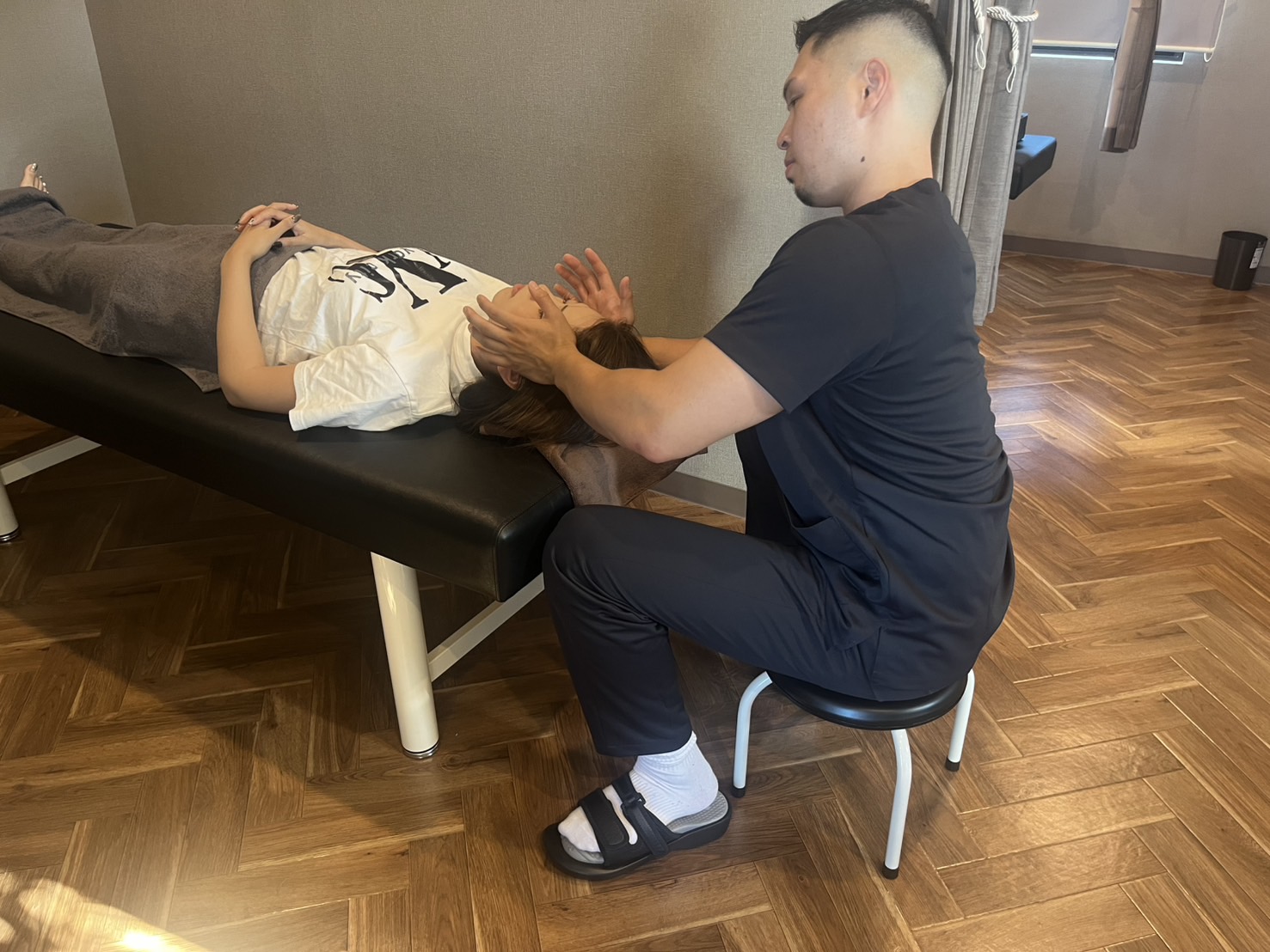 ヘッドスパのメニューですが目、首、頭の3箇所を施術します。